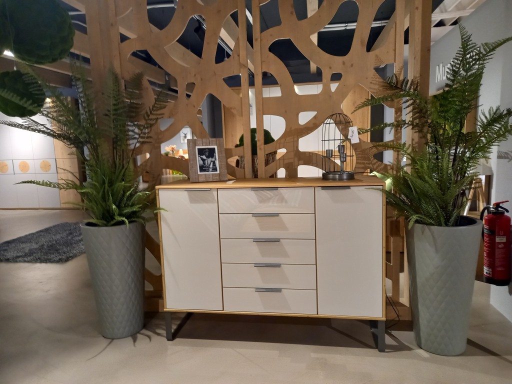 Bianco Eiche teilmassivGlastüren Champagner Inkl. Beleuchtung Bestehend aus Kleiderschrank 300x216x58cmBettanlage Liegefläche 180x200cm Kombikommode